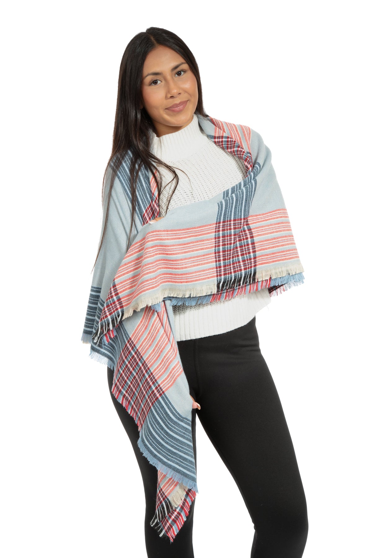 Just Cozy up with these luxurious blanket scarves. Soft, warm and versatile to keep you looking chic this winter season. Wrap up in this blanket scarf and add a little extra warmth and style to your look. A cozy accessory made with soft fabric for comfortable wear. Perfect for the Fall/Winter weather. Dimensions: 55" long and 54" wide. Size may vary within 2".